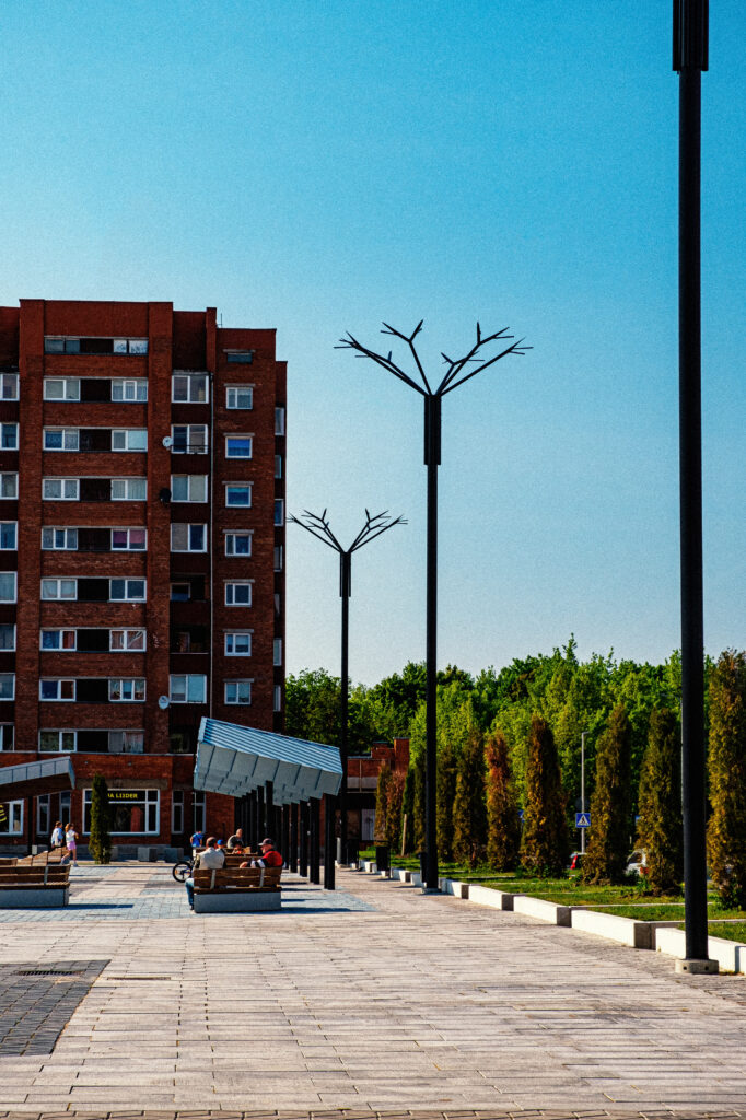 For central square in Ahtme, Estonia, we installed Cornflower and City street luminaires designed for urban lighting and pedestrian street lighting as part of the square’s reconstruction. The project establishes a consistent pole-top lighting system across the public space, providing clear illumination while maintaining a unified lighting language.