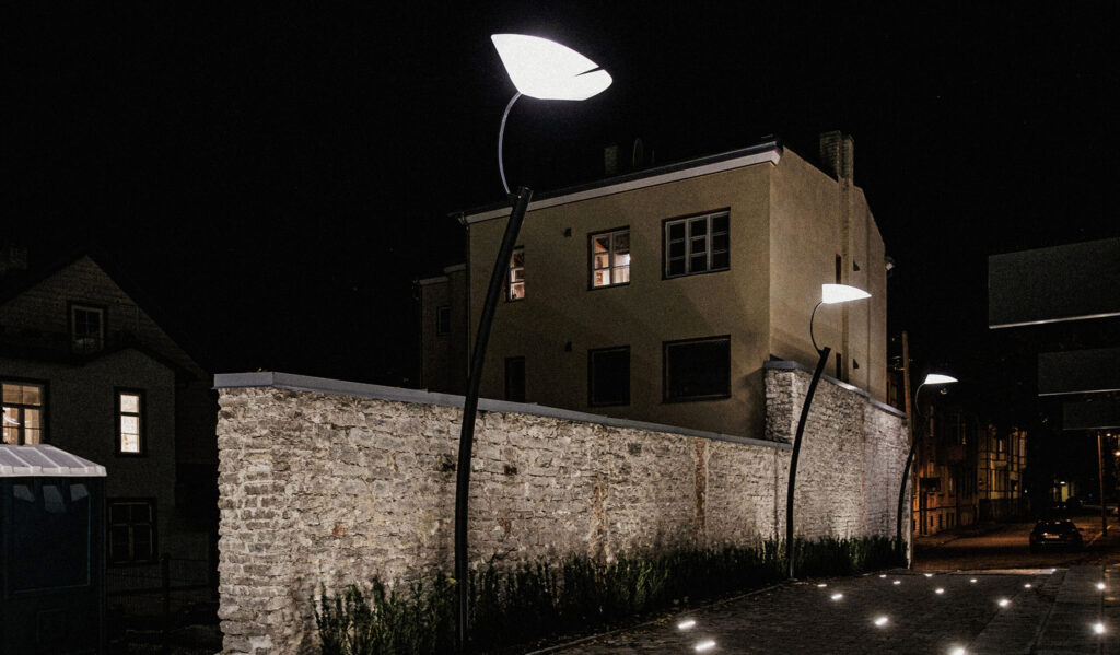 For Das Haus residential quarter in Tallinn, we installed the Ginko park light, a pole-top urban and park luminaire designed for pedestrian and landscape lighting beside the historic park. The lighting concept responds to the nearby ginkgo biloba tree, Estonia’s oldest and northernmost specimen, integrating natural reference with contemporary outdoor lighting design.