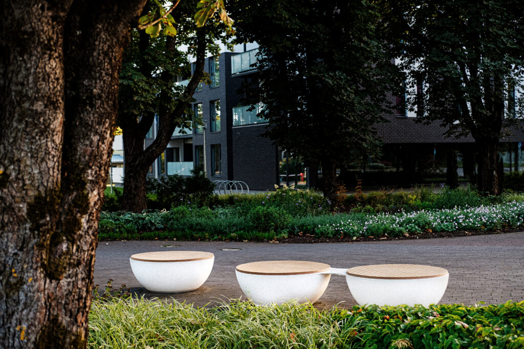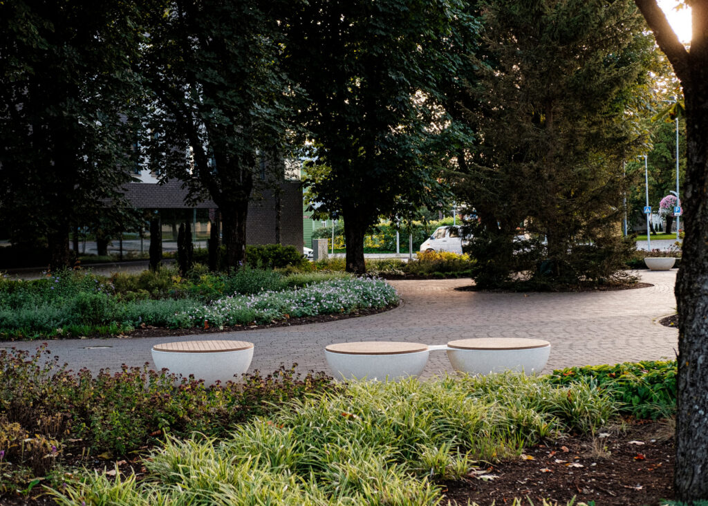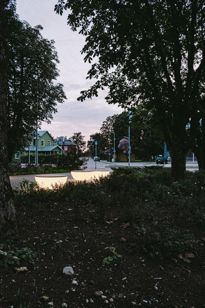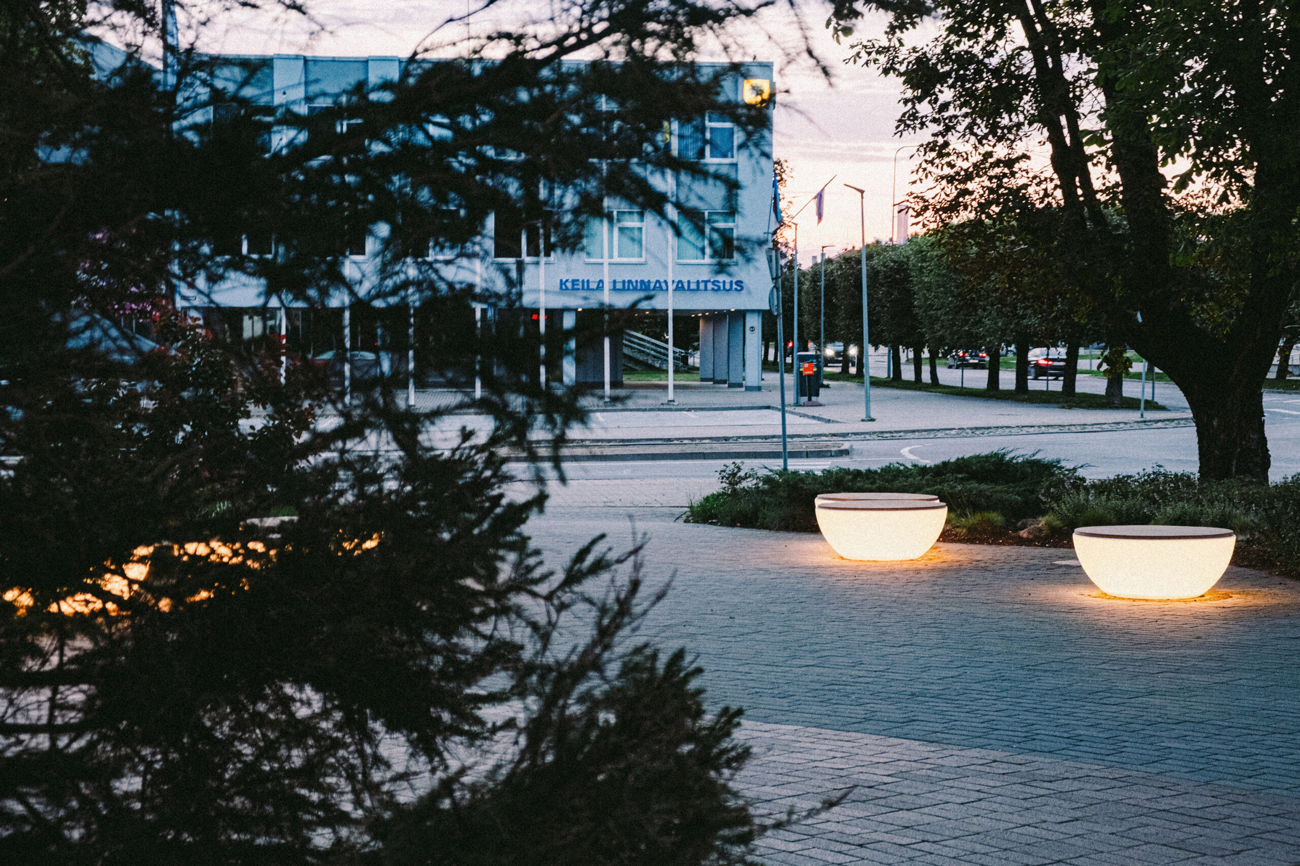 Keila Square was the first project for which we designed Timpan, a modular illuminated bench inspired by the timpani percussion instrument. Installed individually or grouped in sets of up to three, Timpan illuminated benches create sculptural seating elements that emit a soft ambient glow, providing both outdoor seating and landscape lighting for public spaces.