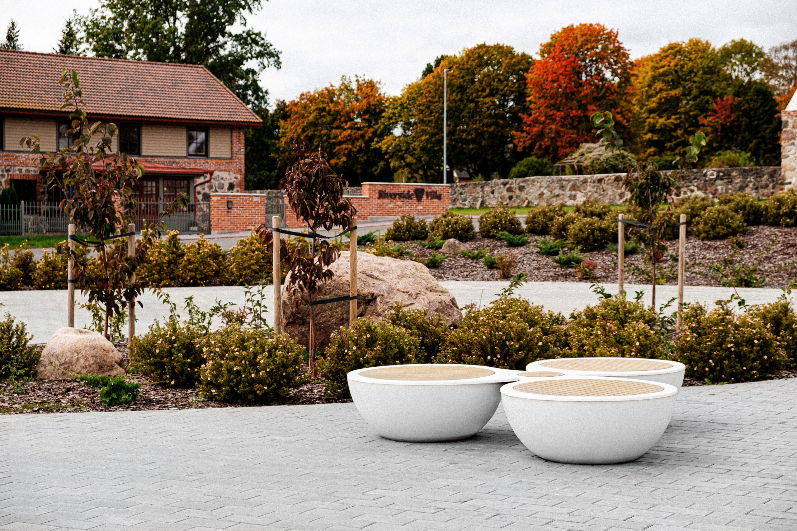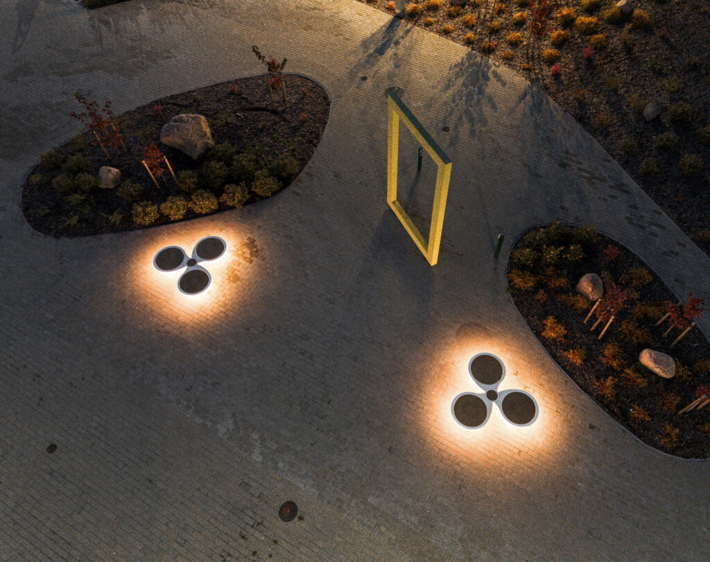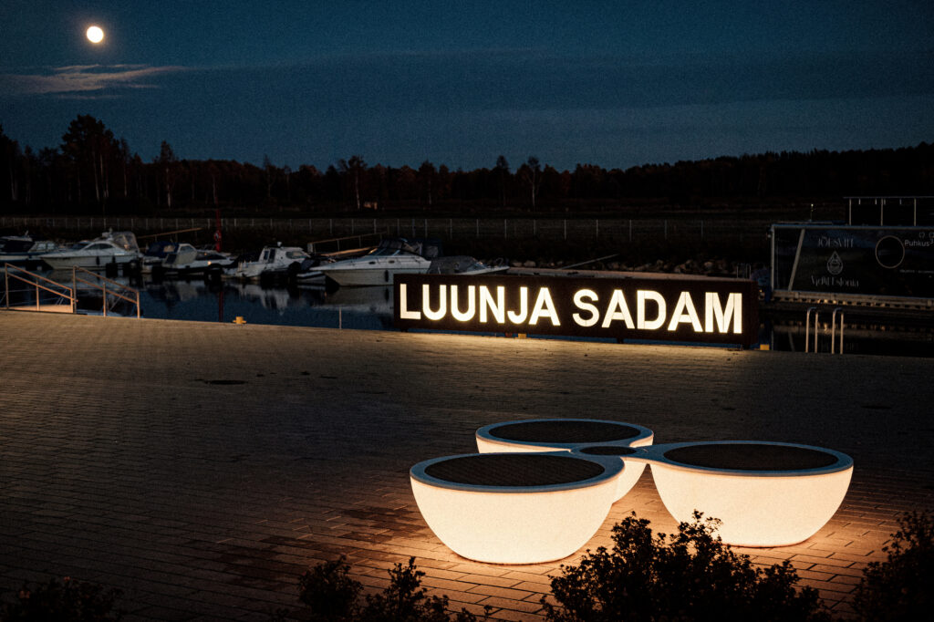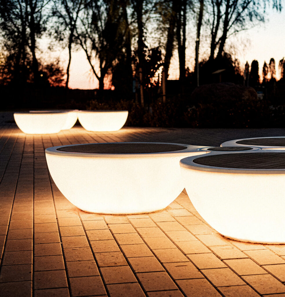 At Luunja Harbor in Estonia, our Rotor illuminated bench provides sculptural waterfront seating and integrated landscape lighting. Inspired by ship propellers, the bench features a radial form that integrates curved seating pods with soft ambient illumination, combining functional outdoor seating with atmospheric lighting for public waterfront spaces.
