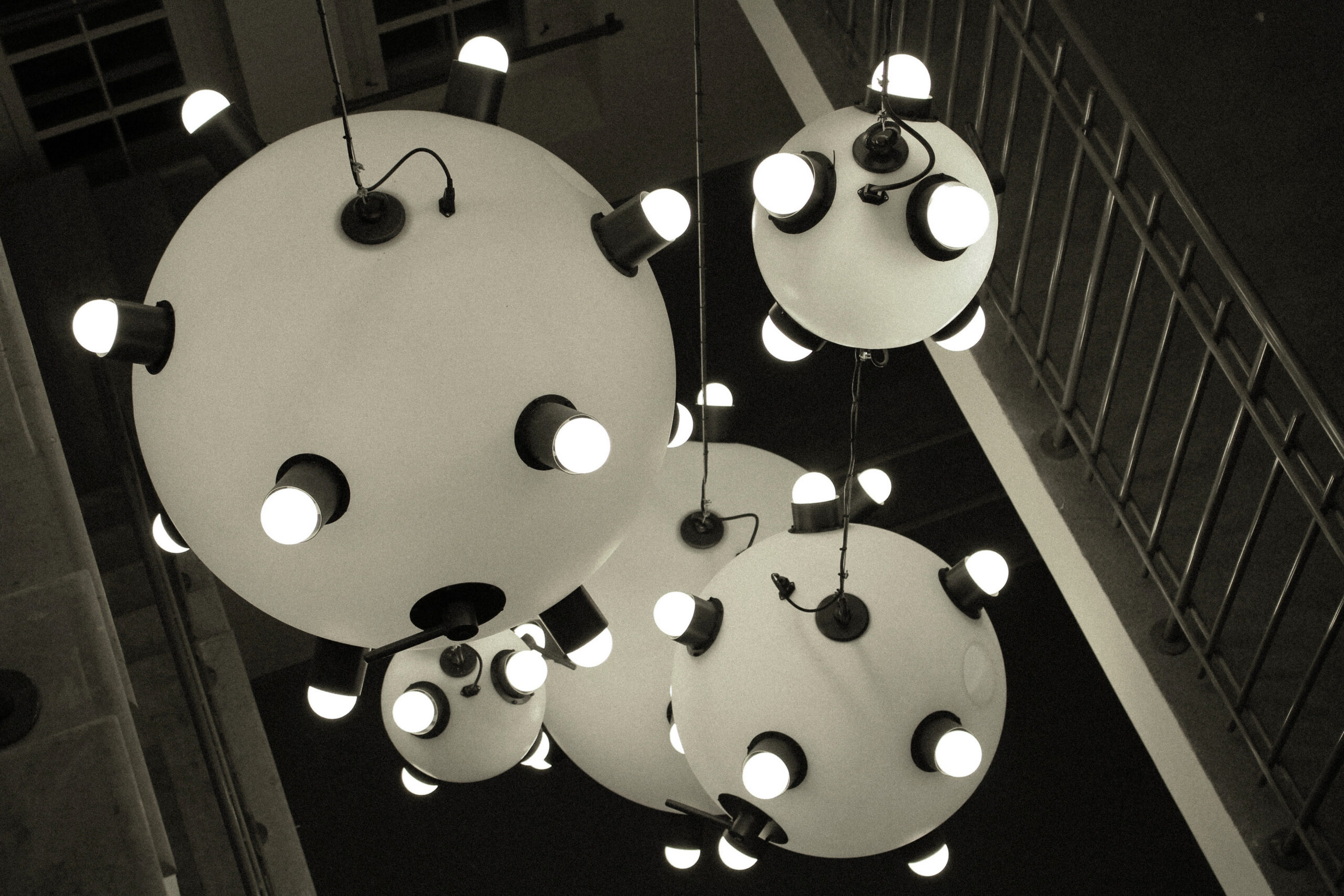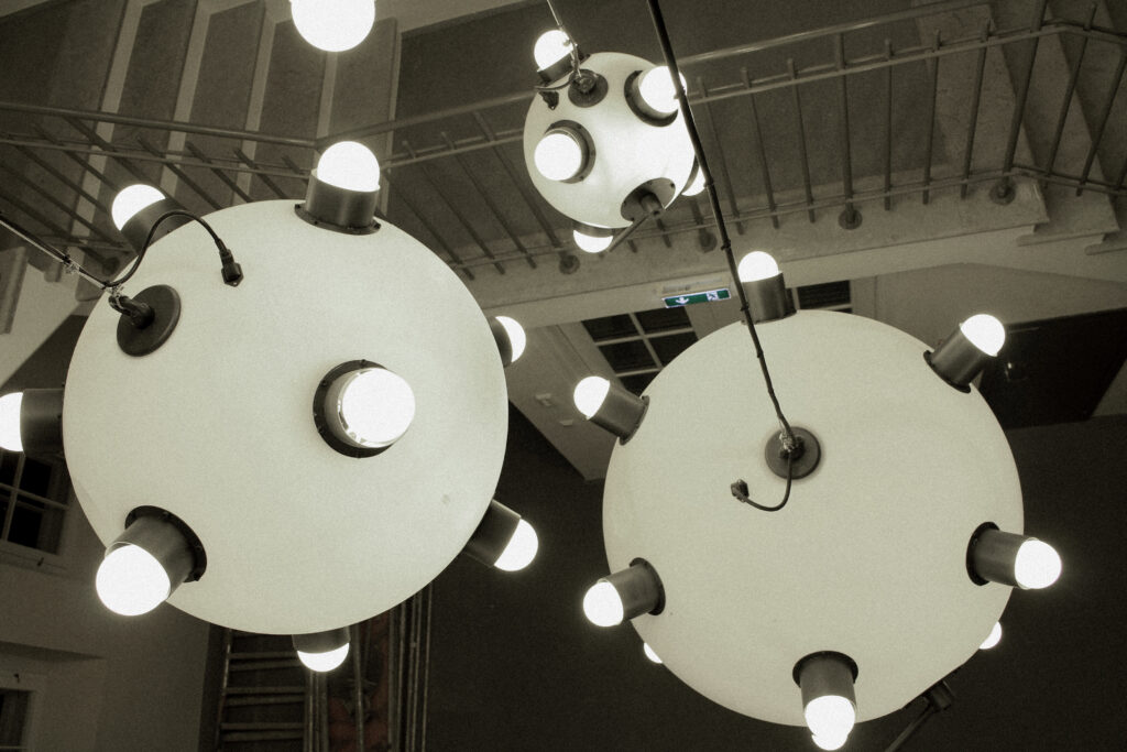 The Mine Harbour Museum in Tallinn features a suspended lighting installation inspired by historic naval sea mines, adding a playful yet context-driven element to the exhibition space.