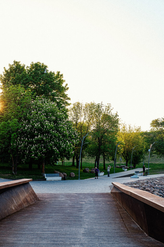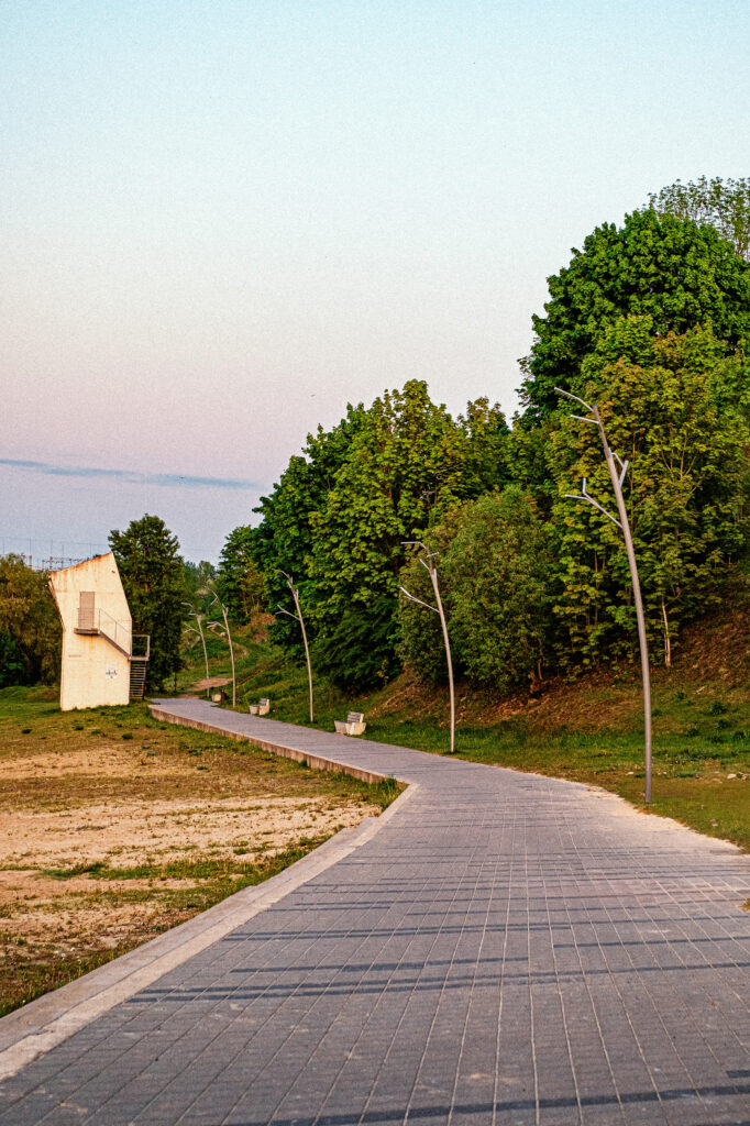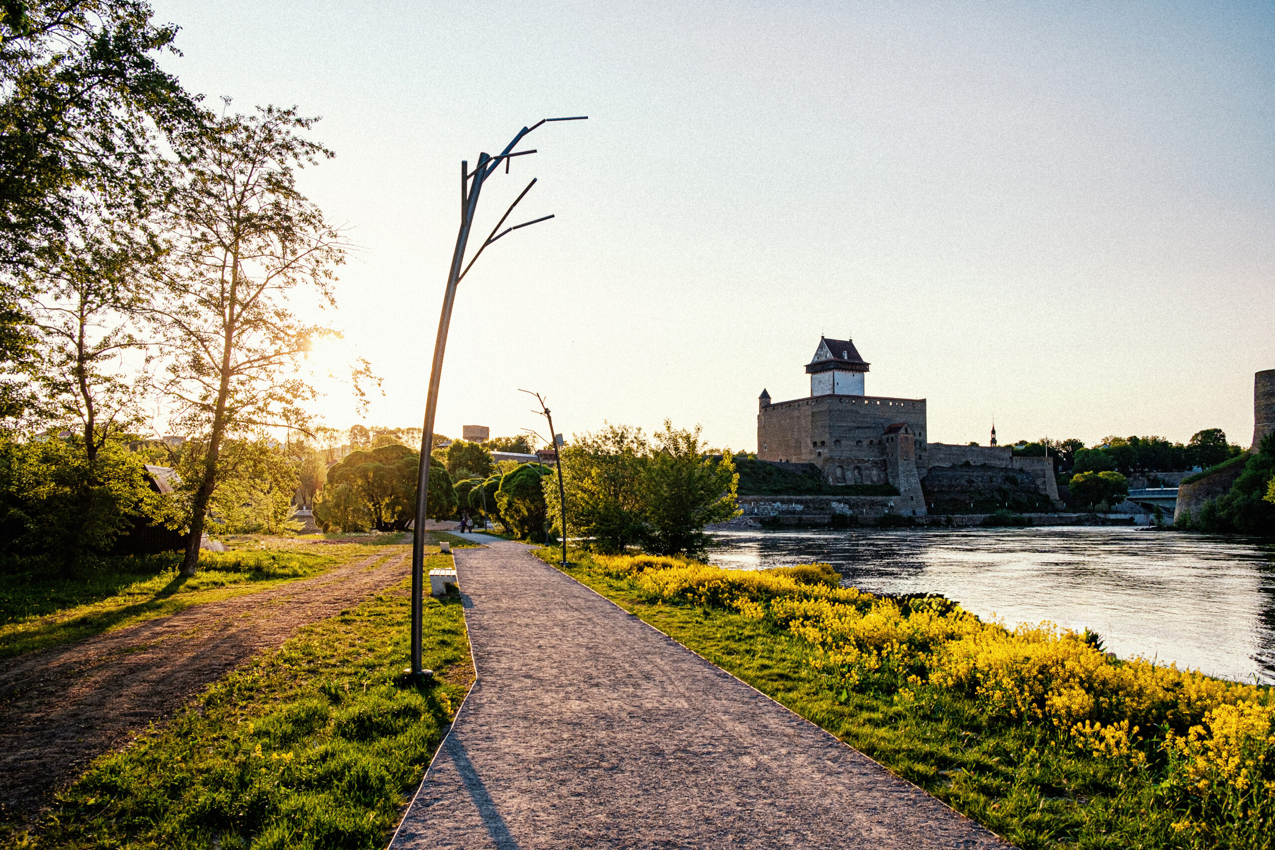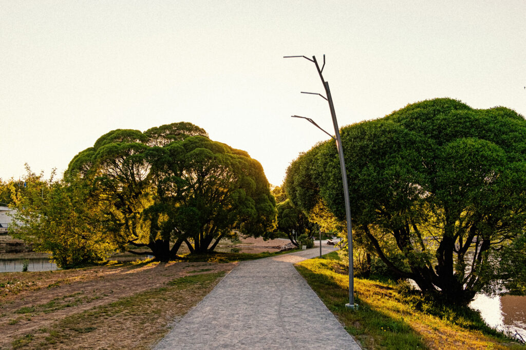 The Narva River promenade is illuminated with our Tree outdoor pole lights, designed for waterfront lighting, pedestrian routes, walkways, and low-traffic roads.