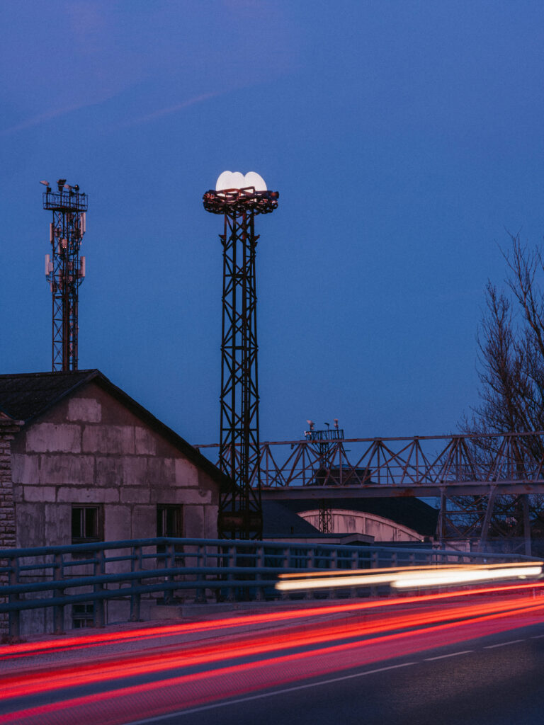 Nest is an urban art installation located in Noblessner Harbor in Tallinn, designed to transform public space through architectural lighting, creativity, and the sustainable reuse of materials. Inspired by a child’s sketch and developed in collaboration with the Estonian design agency Velvet, we translated the original idea into a distinctive public artwork integrated into the surrounding urban environment.