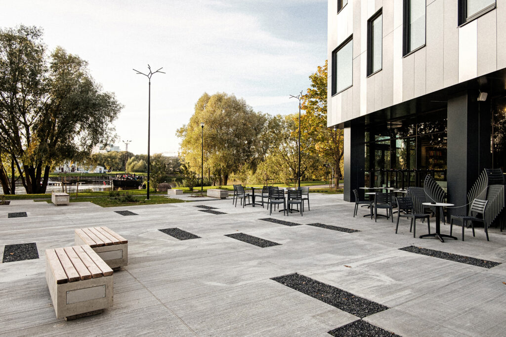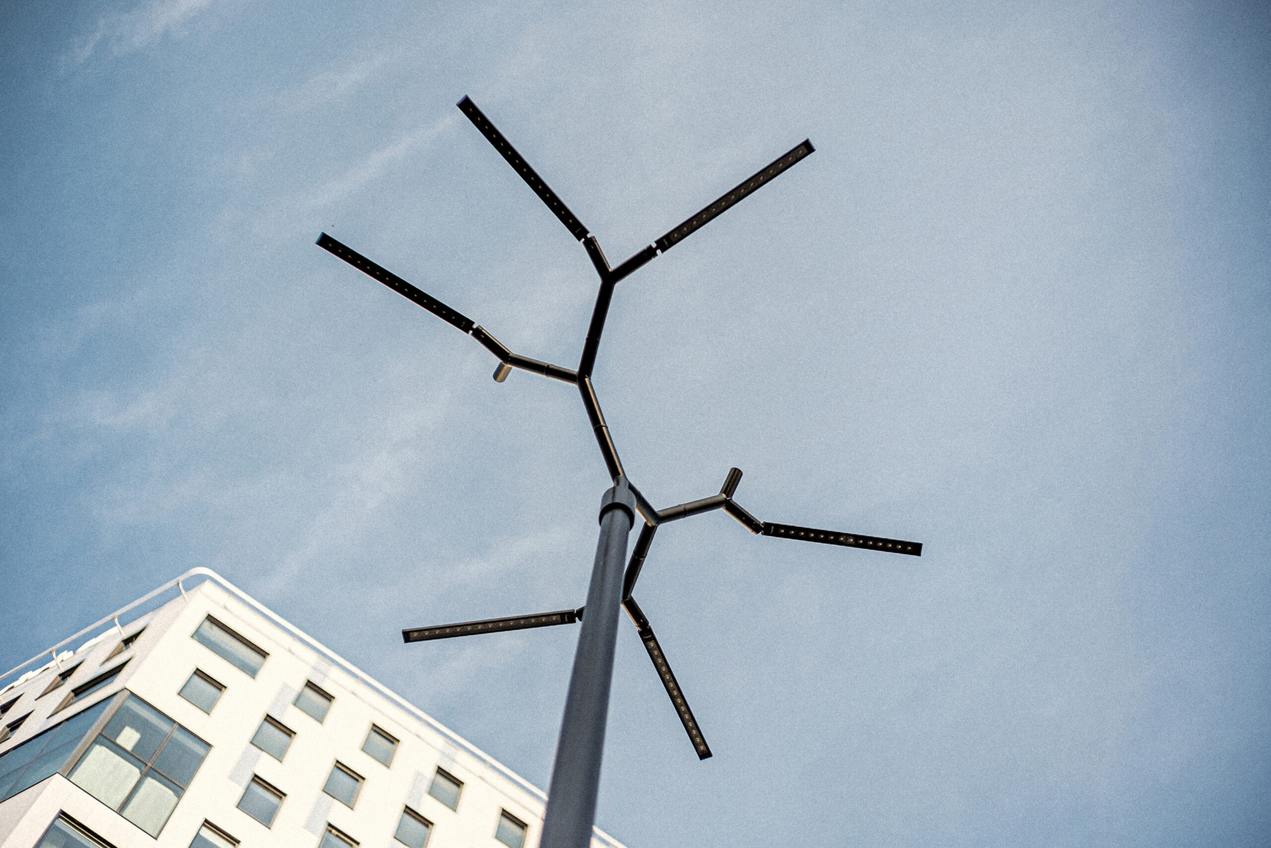 For a riverside area in central Tartu, Estonia, we installed Branch street luminaires to illuminate pedestrian paths and surrounding outdoor spaces within the river landscape. The Branch pole-top luminaire is designed with a form inspired by the crown of a pine tree, introducing a subtle reference to nature within a contemporary urban lighting object.