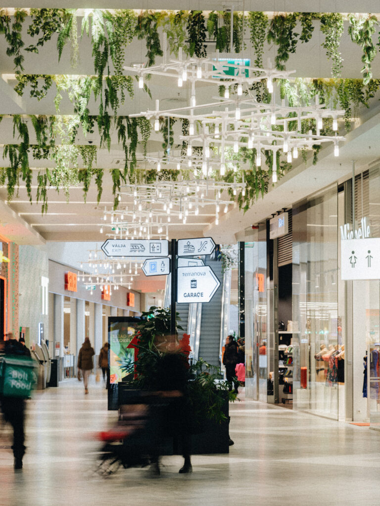 HEXA contemporary modular chandeliers are installed at T1 Mall in Tallinn, where they illuminate the large interior corridors and create a strong architectural lighting presence within the shopping centre. The installation includes 41 customisable chandeliers, suspended at varying heights to introduce depth, rhythm, and visual continuity across the interior space.